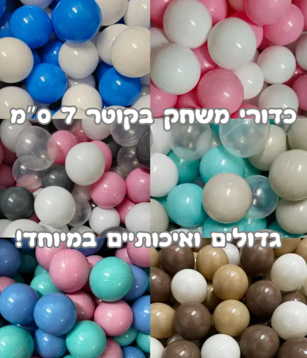 כדורי משחק לילדים איכותיים צבעוניים 100 יח בקוטר 7 ס"מ